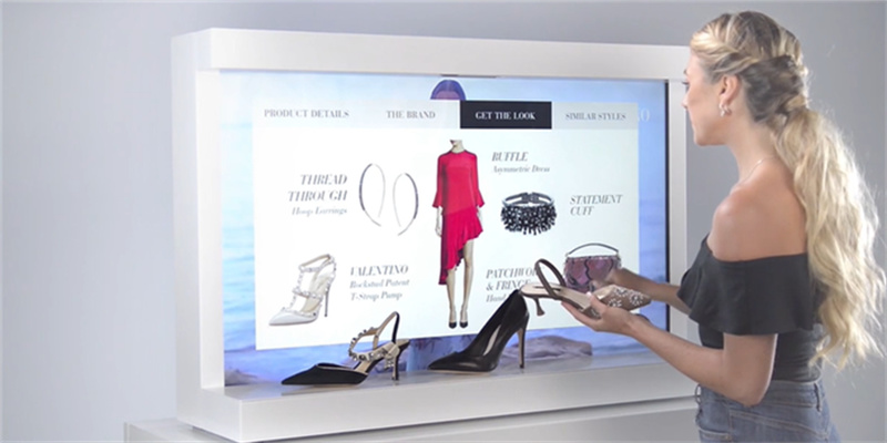 講解的是集視頻廣告、信息互動、數據采集于一體的高科技展品管理系統。它把普通顯示屏和信息交流互動結合起來,不僅把銷售從傳統的“講述式”向時尚的“體驗式”提升,而且把展品特性、促銷、廣告等信息內容更充分形象地展現在顧客面前。同時,它不僅減少了人工成本,還提升了店鋪服務形象。